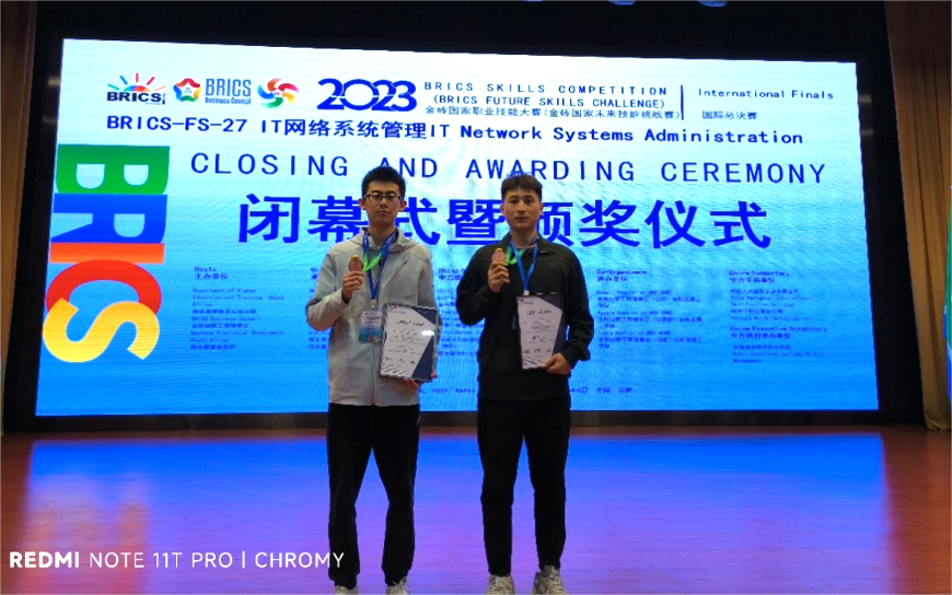 11月4日至6日,2023金磚國家職業(yè)技能大賽IT網絡系統(tǒng)管理賽項總決賽在安徽舉行。山東商職學院學生張玉星、陳浩獲總決賽一等獎。