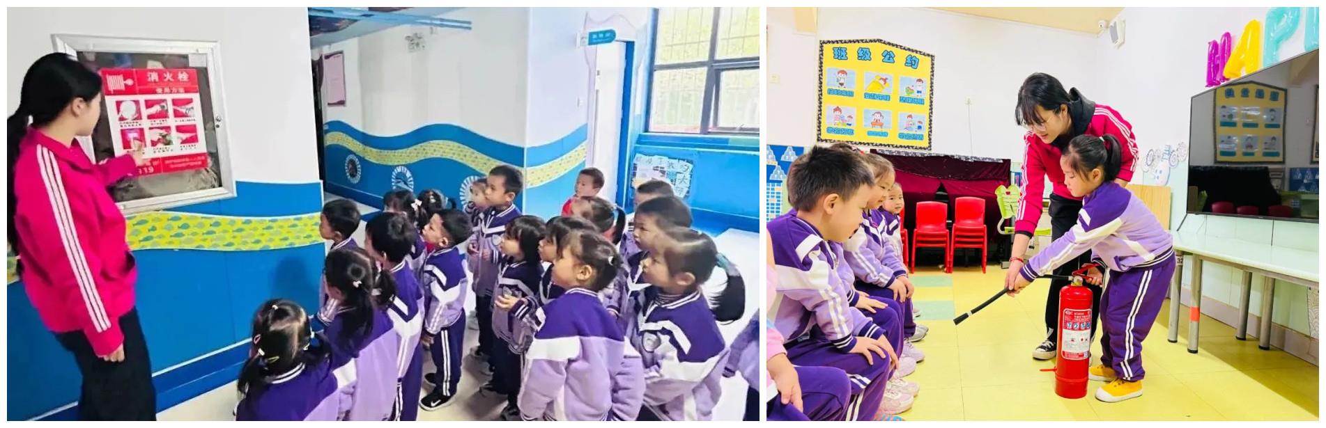 各分園積極開展消防安全培訓,重點從火災基礎知識、火災警示案例、滅火基本方法、消防器材種類、如何自救逃生等方面進行講解,實踐操作消防器材的使用方法,積極開展幼兒消防安全疏散應急演練。
