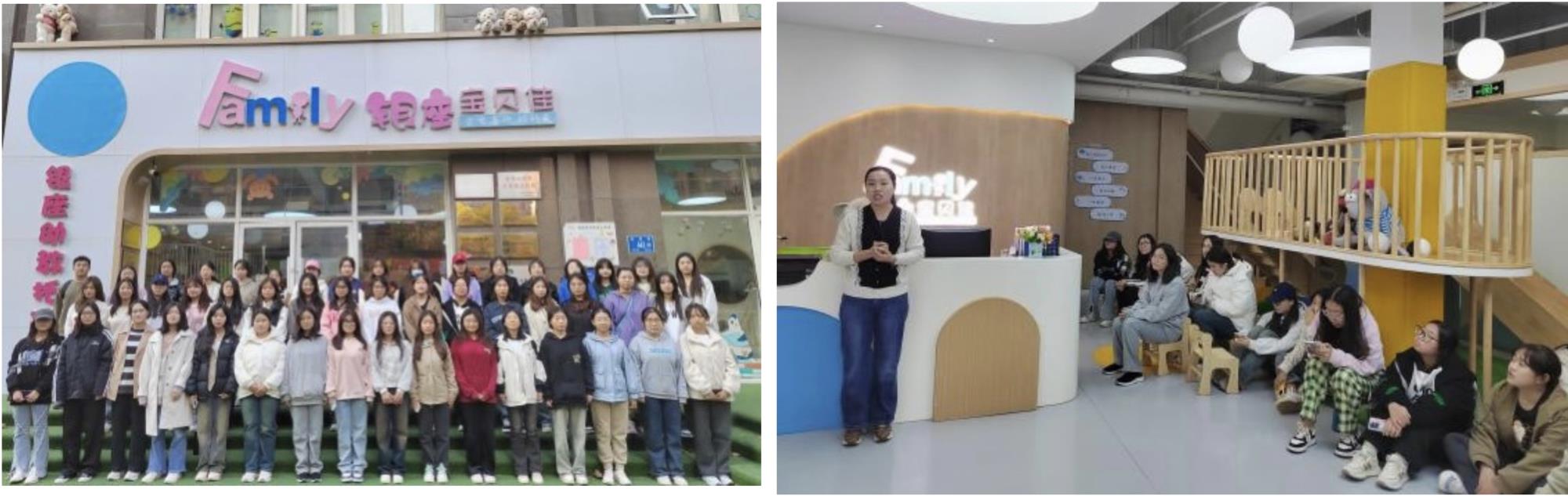 在銀座寶貝佳東城逸家托育園,師生實地參觀園區(qū)教學(xué)環(huán)境、衛(wèi)生設(shè)施、保育設(shè)施等,與管理人員就托育機(jī)構(gòu)的運營管理、人才培養(yǎng)、課程建設(shè)、師資隊伍建設(shè)等方面進(jìn)行了詳細(xì)交流。
