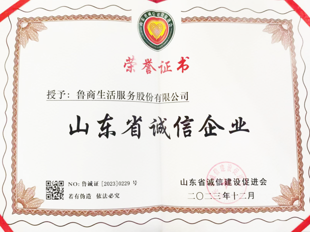 在近日召開(kāi)的山東省誠(chéng)信企業(yè)暨山東省誠(chéng)信優(yōu)秀企業(yè)家授牌儀式上,魯商服務(wù)被授予“山東省誠(chéng)信企業(yè)”榮譽(yù)稱號(hào),魯商服務(wù)黨委書記、董事長(zhǎng)、總經(jīng)理王忠武被評(píng)為“山東省優(yōu)秀誠(chéng)信企業(yè)家”。