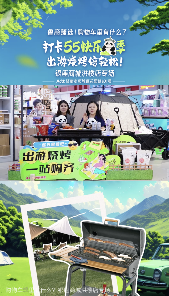 近日,魯商科技旗下魯商臻選直播團隊聯合銀座集團在銀座濟南洪樓店開展“打卡55快樂季,出游燒烤倍輕松!”主題直播活動,觀看人數創歷史新高。