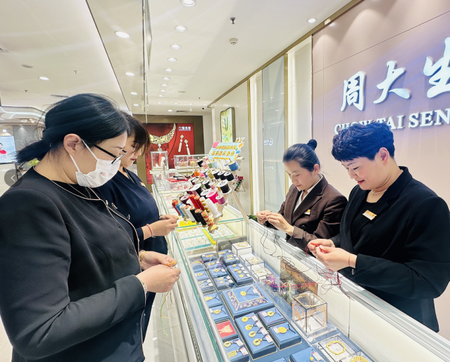 “消費(fèi)者的需求在哪里,我們的商品服務(wù)和技能就跟到哪里”。目前,“珠寶織夢(mèng)者”團(tuán)隊(duì)有30余名資深珠寶專(zhuān)柜員工,她們不僅可以根據(jù)節(jié)日特點(diǎn)及顧客喜好,提供三股、四股、金剛結(jié)等30余種編法的專(zhuān)柜陳列成品手繩,也可以根據(jù)圖片現(xiàn)場(chǎng)制作。無(wú)論消費(fèi)者是否在專(zhuān)柜購(gòu)買(mǎi)珠寶飾品,均可免費(fèi)享受該項(xiàng)服務(wù)。