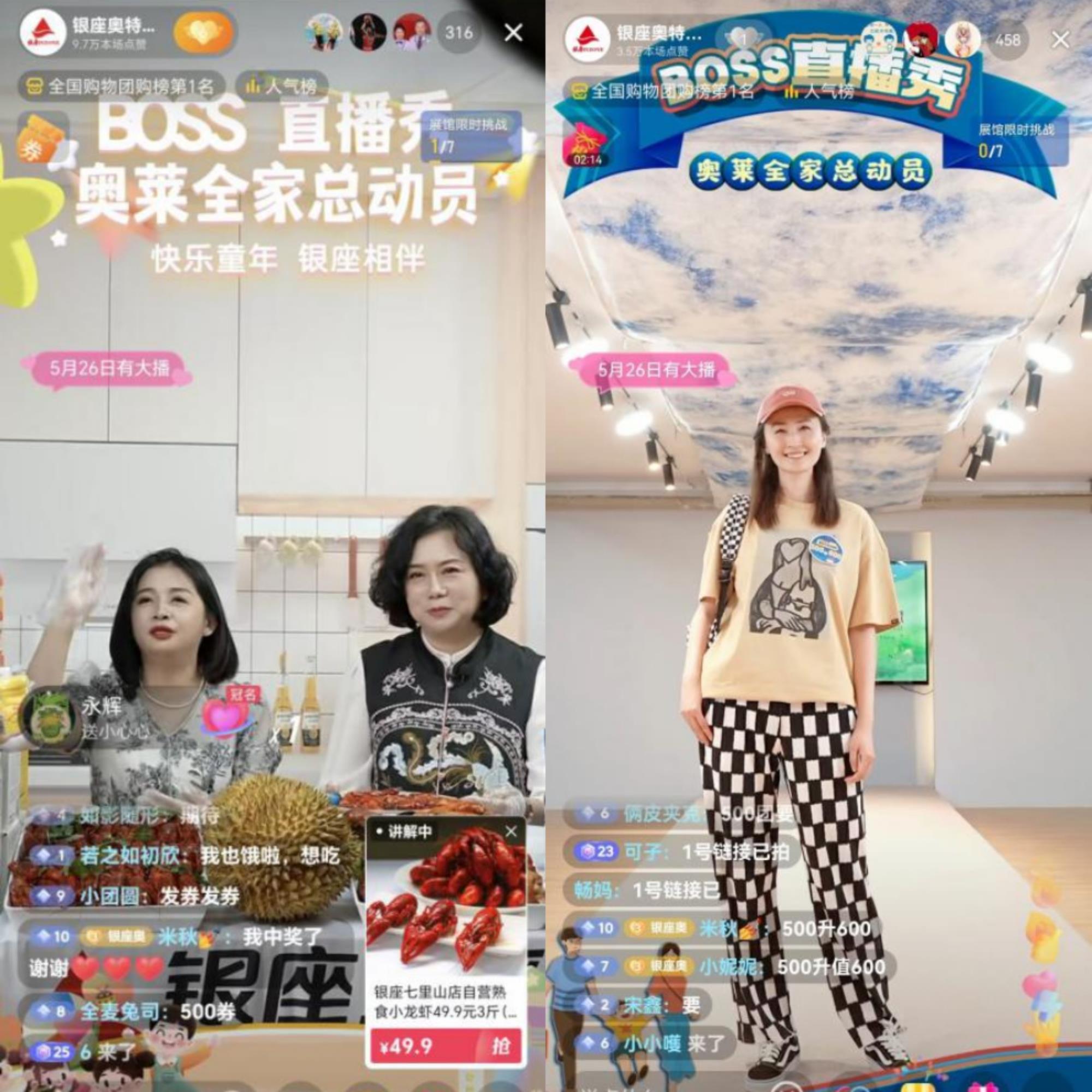 BOSS直播期間,新直播間同時啟用百貨“秀場”和超市“廚房”雙場景,依次呈現成長加油、青春的你、沖鴨打工人、清涼消夏、甜蜜生活等主題,為考生家長、白領、情侶等群體推薦商品,“中考加油媽媽團”“上陣父子兵”、超市“歲月靜好美食團”等創新搭配,吸引眾多消費者關注。本次活動戰果豐碩,4小時直播GMV111.47萬元,直播間累計曝光超28萬,累計點贊13萬次,榮登抖音全國購物團購榜第一名。