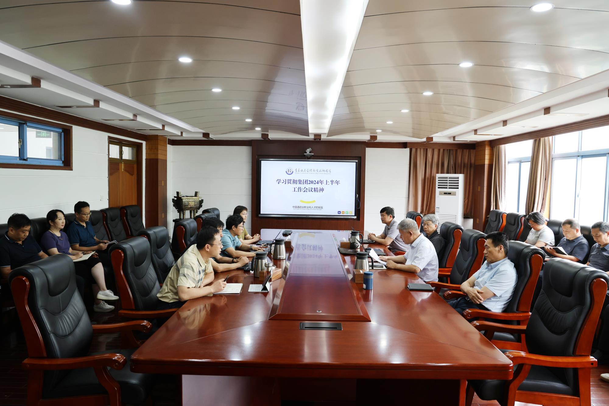 78日,青島酒店管理職院召開專題會議,傳達學習魯商集團2024上半年工作會議精神學校領導班子成員以及中層干部參加會議黨委書記李達主持會議并講話。