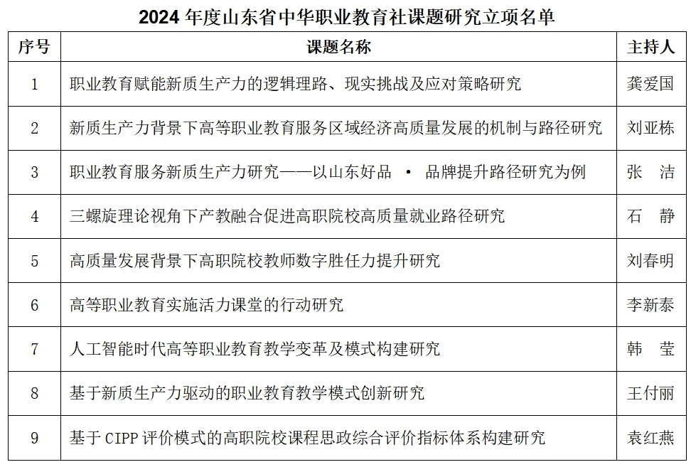 近日,山東省中華職業(yè)教育社發(fā)布了《關(guān)于 2024 年度全省職教社系統(tǒng)課題立項(xiàng)的通知》。山東商職學(xué)院9項(xiàng)課題獲準(zhǔn)立項(xiàng),課題立項(xiàng)數(shù)量在全省名列前茅。