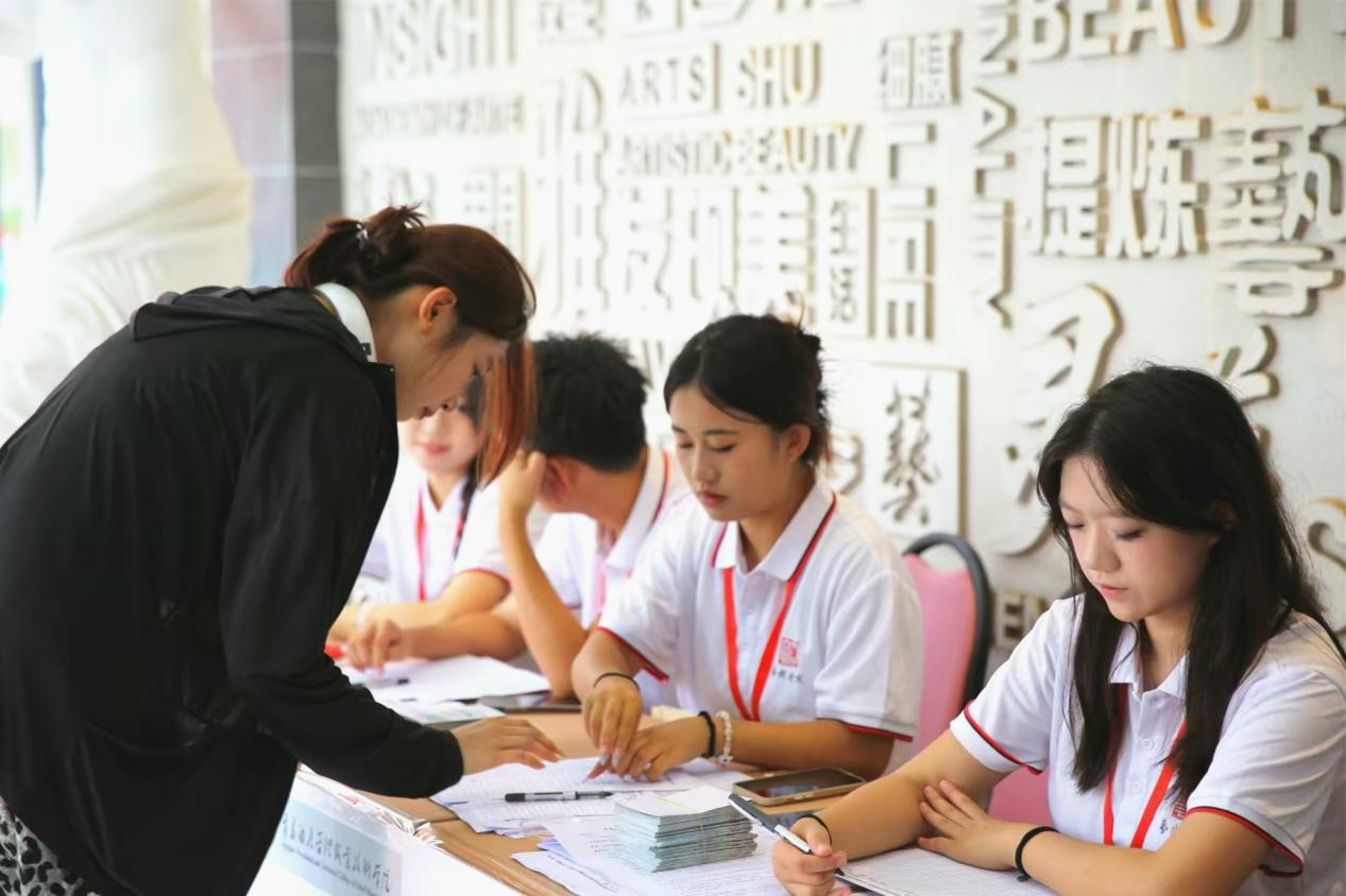 “魅力酒管”專屬打卡墻、“幸福雅集”驛站、味味道來(lái)“新質(zhì)烹飪青年”大闖關(guān)、“匠心工程”姓名墻、工商“速運(yùn)”、心想“柿”成心愿墻、“E”見(jiàn)傾“信”幸運(yùn)大轉(zhuǎn)盤、“藝+”沉浸式打卡點(diǎn)……這些獨(dú)具特色的迎新活動(dòng),引得眾多新生和家長(zhǎng)駐足參與、拍照留念,有助于新生更快地了解專業(yè)文化、融入校園生活。