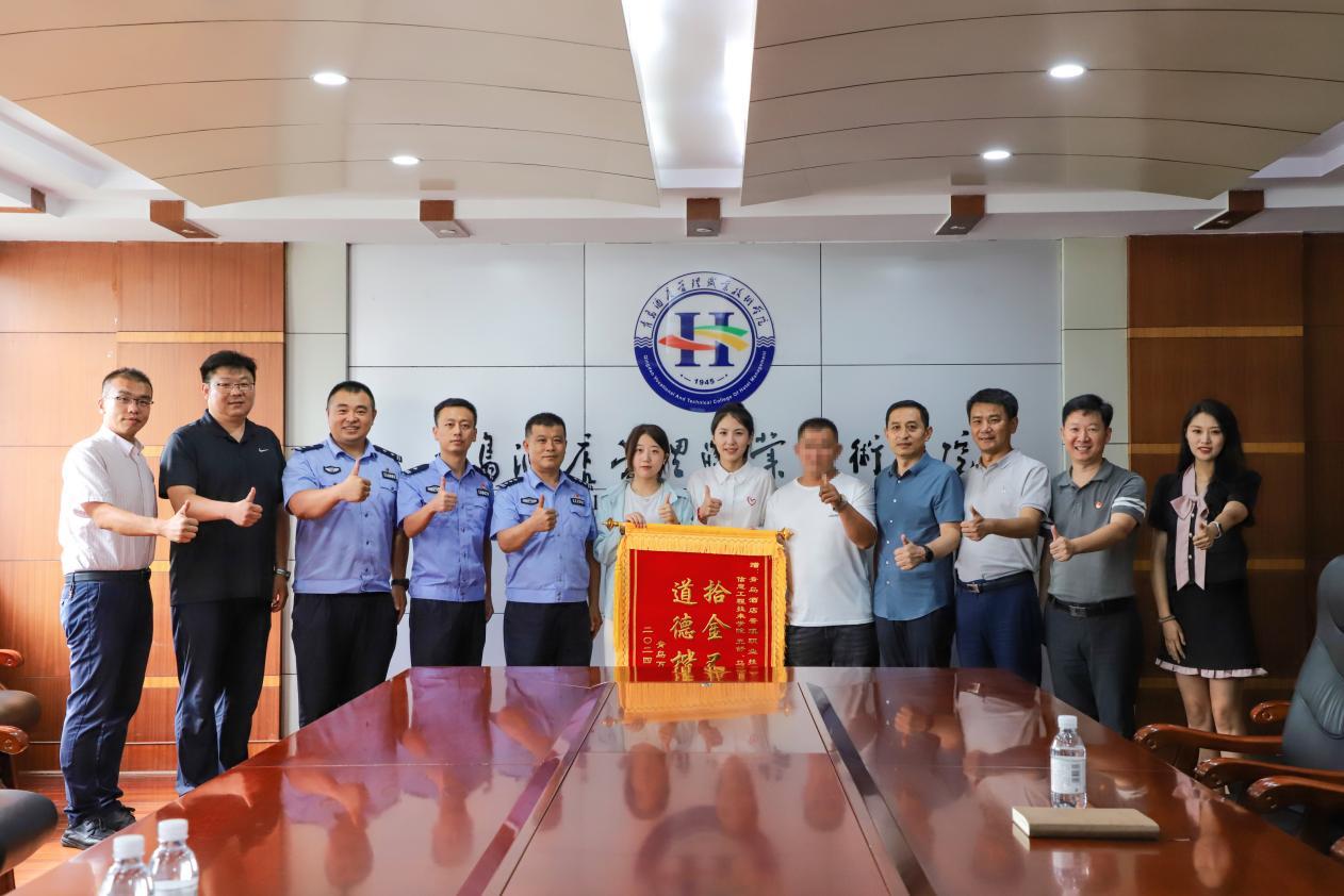 近日,青島申先生向青島酒店管理職院2023級學(xué)生王舒、馬玉丹贈送了“拾金不昧 道德楷模”的錦旗,感謝兩位同學(xué)拾金不昧的高尚品德。