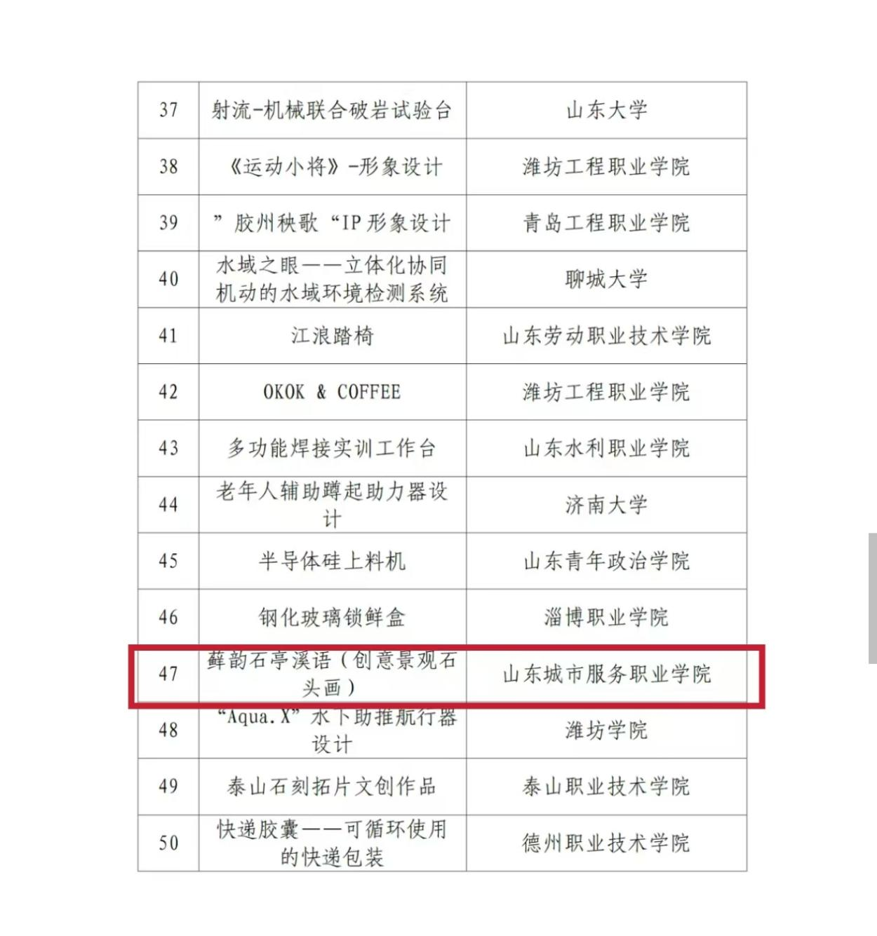 近日,在第五屆“省長杯”工業(yè)設計大賽中,山東城市服務職院獲得“省長杯”新星獎。這是山東城市服務職院首次參加此項比賽,在眾多知名企業(yè)和本科院校同臺競技的背景下,蘚韻石亭溪語(創(chuàng)意景觀石頭畫)在產(chǎn)品組中脫穎而出,獲此殊榮。