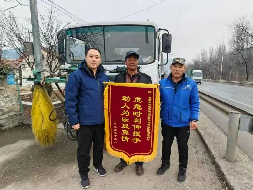 12月10日,淄博市博山區博山鎮居民翟先生將一面印有“危急時刻伸援手,助人為樂顯真情”的錦旗送到了魯商服務淄博博山區國省道項目灑水車駕駛員孫慶全的手里,對其仗義出手幫忙滅火的行為表達感謝。