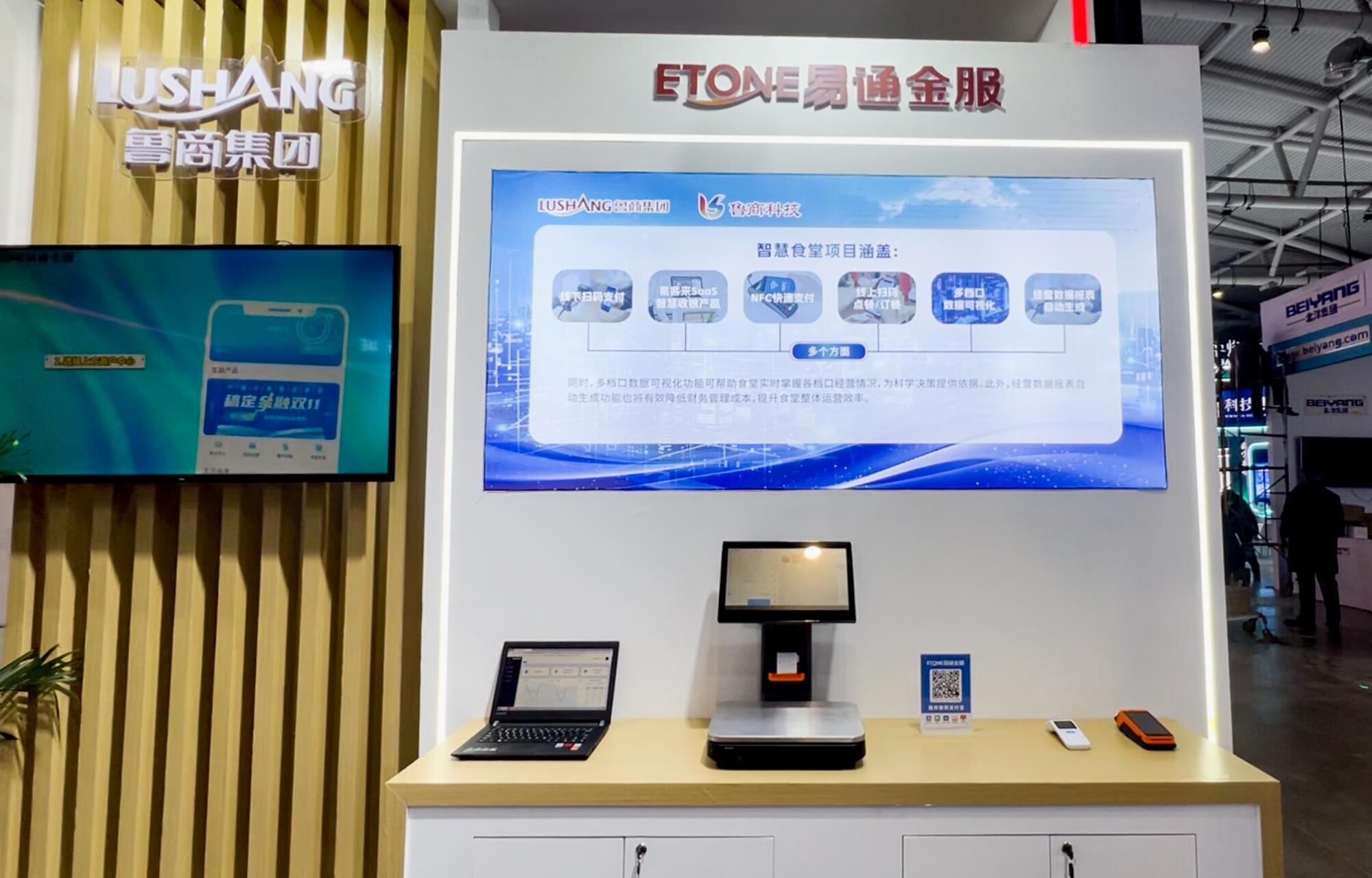 智慧食堂展區展示了線上掃碼點餐/訂餐、線下掃碼支付、NFC快速支付、易客來SaaS智慧收銀產品、多檔口數據可視化、經營數據報表自動生成等多個方面內容,將食堂管理數字化、線上化,極大提高了食堂管理效率。通過設置展區,為智慧食堂項目宣傳搭建了溝通宣傳的橋梁,開展不久便有十多家企業前來咨詢洽談,收獲頗豐。