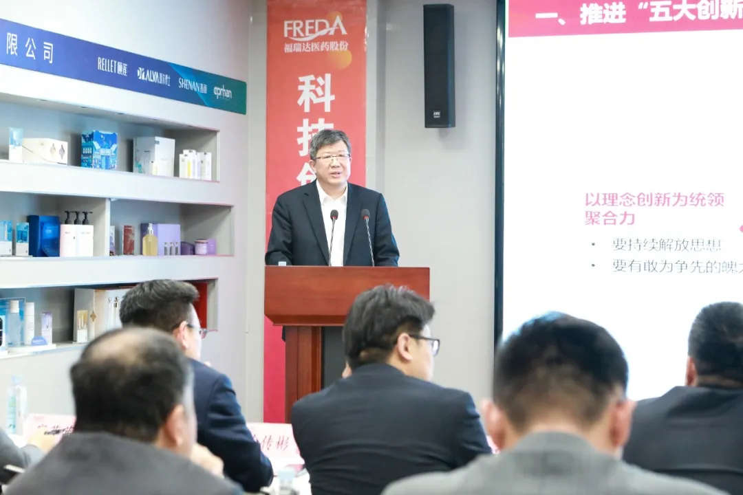 賈慶文作題為《錨定“走在前、挑大梁” 奮力“下實(shí)功、見實(shí)效” 推動(dòng)高質(zhì)量發(fā)展新躍遷》的講話。他指出,2024年,福瑞達(dá)在集團(tuán)黨委的堅(jiān)強(qiáng)領(lǐng)導(dǎo)下,務(wù)實(shí)篤行、銳意進(jìn)取,各項(xiàng)工作提速提質(zhì)提效,向穩(wěn)有韌性,向高有突破,向質(zhì)有提升,向新有動(dòng)力。同時(shí),要正視在思想解放、機(jī)制創(chuàng)新等方面的問題,切實(shí)補(bǔ)足短板。要順應(yīng)趨勢、內(nèi)求超越,看“形”和“勢”強(qiáng)信心,看“質(zhì)”和“量”明方向,看“新”和“變”練內(nèi)功,把握產(chǎn)業(yè)轉(zhuǎn)型升級(jí)新機(jī)遇。2025年福瑞達(dá)要認(rèn)真落實(shí)集團(tuán)年度工作會(huì)議部署,一是推進(jìn)“五大創(chuàng)新”,以理念創(chuàng)新為統(tǒng)領(lǐng),“科技+機(jī)制”雙輪驅(qū)動(dòng),培育新質(zhì)生產(chǎn)力;“模式+業(yè)態(tài)”雙向升級(jí),培育跨界融合消費(fèi)業(yè)態(tài),搶占首發(fā)消費(fèi)力。二是全面深化改革,構(gòu)建高質(zhì)量發(fā)展體系。完成國有企業(yè)改革深化提升行動(dòng),打造生物股份國家“科改企業(yè)”樣板。強(qiáng)化賦能型總部建設(shè),提升運(yùn)營管理和數(shù)字化水平,驅(qū)動(dòng)業(yè)務(wù)增長。三是爭創(chuàng)行業(yè)一流,塑造高質(zhì)量發(fā)展品牌。深化尋標(biāo)對(duì)標(biāo)爭創(chuàng)一流工作,落實(shí)集團(tuán)“六個(gè)品牌”建設(shè)要求,建立集團(tuán)品牌、業(yè)務(wù)品牌和產(chǎn)品品牌“三維一體”品牌管理體系。四是強(qiáng)化黨建引領(lǐng),積蓄高質(zhì)量發(fā)展動(dòng)能。壓實(shí)黨建工作責(zé)任,夯實(shí)黨建基層基礎(chǔ),抓實(shí)全面從嚴(yán)治黨,大力弘揚(yáng)“用心、務(wù)實(shí)、盡力”的工作作風(fēng),形成搶挑重?fù)?dān)、履職盡責(zé)的創(chuàng)業(yè)氛圍,為集團(tuán)全面打造綜合競爭力強(qiáng)的現(xiàn)代商業(yè)服務(wù)領(lǐng)軍企業(yè)作出新的更大的貢獻(xiàn)。
