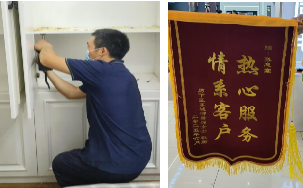 面對(duì)感謝,他靦腆回應(yīng)“舉手之勞,不算啥。”幾日后,屈女士專程送來“熱心服務(wù) 情系客戶”的錦旗,連聲稱贊:“張師傅不僅洗碗機(jī)裝得專業(yè),幫我改的衣柜也特別順手,這樣的貼心服務(wù)必須點(diǎn)贊!”