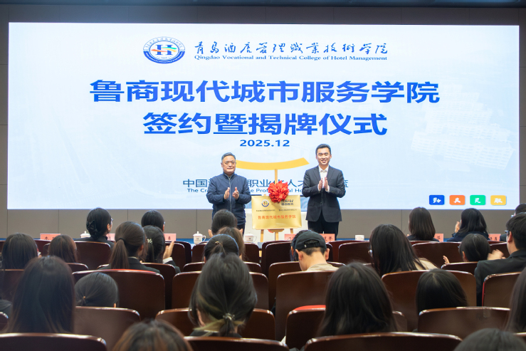近日,青島酒店管理職院與魯商服務共建魯商現代城市服務學院正式揭牌。