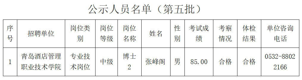 根據(jù)省委組織部、省人力資源和社會(huì)保障廳《關(guān)于印發(fā)2023年度省屬事業(yè)單位公開招聘工作實(shí)施方案的通知》(魯人社發(fā)〔2022〕23號(hào))和省屬事業(yè)單位公開招聘有關(guān)政策規(guī)定,按照崗位招聘計(jì)劃,青島酒店管理職業(yè)技術(shù)學(xué)院組織完成了公開招聘考試、考察、體檢等工作,現(xiàn)對(duì)該單位第五批擬聘用人員進(jìn)行公示。公示期為7個(gè)工作日,自2023年8月29日至2023年9月6日(不含節(jié)假日)。公示期間,如對(duì)公示人選有異議,請(qǐng)向山東省商業(yè)集團(tuán)有限公司人力資源部反映。反映問題要實(shí)事求是,并告知真實(shí)姓名及聯(lián)系方式。