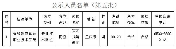 根據(jù)省屬事業(yè)單位公開招聘有關(guān)政策規(guī)定,按照崗位招聘計劃,青島酒店管理職業(yè)技術(shù)學(xué)院組織完成了公開招聘考試、考察、體檢等工作,現(xiàn)對該單位第五批擬聘用人員進(jìn)行公示。公示期為7個工作日,自2024年7月17日至2024年7月25日(不含節(jié)假日)。公示期間,如對公示人選有異議,請向山東省商業(yè)集團(tuán)有限公司反映。反映問題要實事求是,并告知真實姓名及聯(lián)系方式。