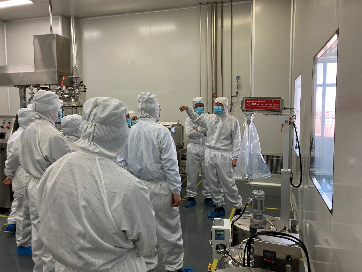 活動中,雙方走進生產一線,開展了沉浸式學習交流。在外用制劑和口服制劑生產車間內,各車間主任結合生產實際,詳細講解了各個工段設備的工作原理、操作規范以及維護要點,研發人員一邊認真聆聽,一邊結合自身在研發中遇到的難題,與技術人員展開深入討論。