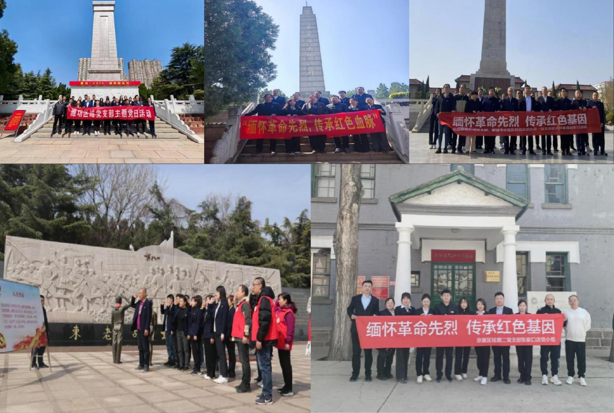 示范引領樹標桿,紅色教育見實效。濟南萬虹店黨支部前往烈士山革命陵園舉行清明祭掃,重溫入黨誓詞,開展“紅色地標里的黨史課”。聊城區域聯合聊城市中醫醫院臨床綜合第一黨支部走進聊城市革命烈士陵園,活動中認真學習了中央八項規定精神并結合工作開展交流、提升作風。銀座配送中心黨支部聯合濟南中鐵逸都黨支部共50余人前往濟南市英雄山革命烈士陵園舉行祭奠儀式,大家認真擦拭墓碑,表達哀思,隨后開展登山拉練和黨課學習活動。京冀區域第二黨支部張家口店黨小組赴晉察冀軍區司令部紀念館參觀學習,通過珍貴文物和史料,深切感悟革命先輩的堅定信念和奉獻精神。濟南廣場店、珠寶公司、日照區域、濟寧區域以及濰坊區域等前往烈士陵園,敬獻花籃、默哀致敬、參觀紀念館,接受愛國主義和革命傳統教育。