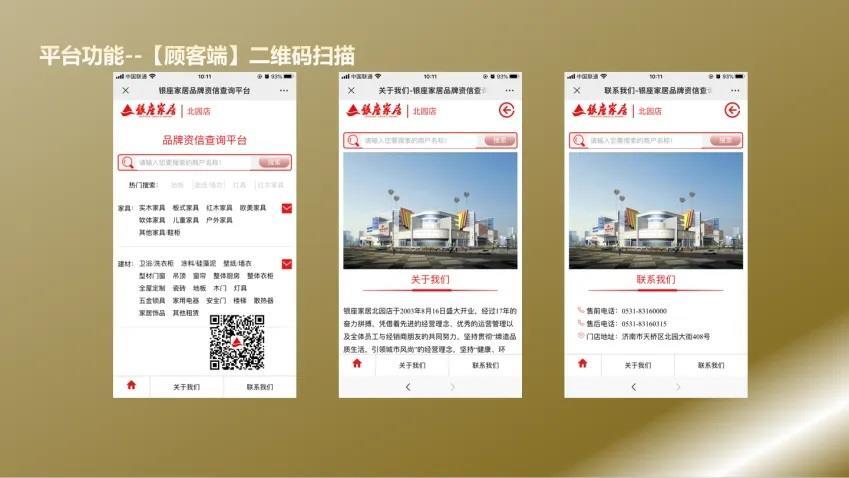 為優(yōu)化守信經(jīng)營氛圍及健全商戶信用管理體系,由營運(yùn)團(tuán)隊(duì)自主研發(fā)搭建“商戶信用查詢平臺”,該平臺通過顧客前端與管理后端兩個(gè)端口管理支撐實(shí)現(xiàn)四個(gè)功能,前端消費(fèi)者可通過展廳二維碼掃描隨時(shí)查看品牌經(jīng)營資質(zhì),打消顧慮實(shí)現(xiàn)信用公開可視化;后端設(shè)定提前30天預(yù)警功能實(shí)現(xiàn)授權(quán)資質(zhì)和工廠資質(zhì)預(yù)警管理自動化,多維度有效管理控制商戶風(fēng)險(xiǎn),引導(dǎo)商戶由被動管理走向自助管理。