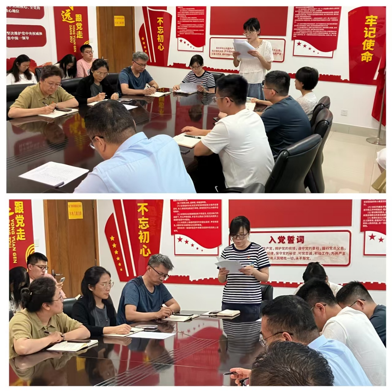 第六黨支部、第四黨支部、第八黨支部組織黨員干部在黨旗下莊嚴宣誓,黨員整齊列隊,精神抖擻,懷著無比崇敬和激動的心情,面向黨旗鄭重宣誓。鏗鏘有力的誓言喚醒每一位黨員最初的入黨記憶,提醒大家始終牢記黨員身份,堅守對黨的忠誠。大家紛紛表示將把政治信仰轉化為工作行動自覺,在科研創新中踐行入黨初心,筑牢對黨忠誠。